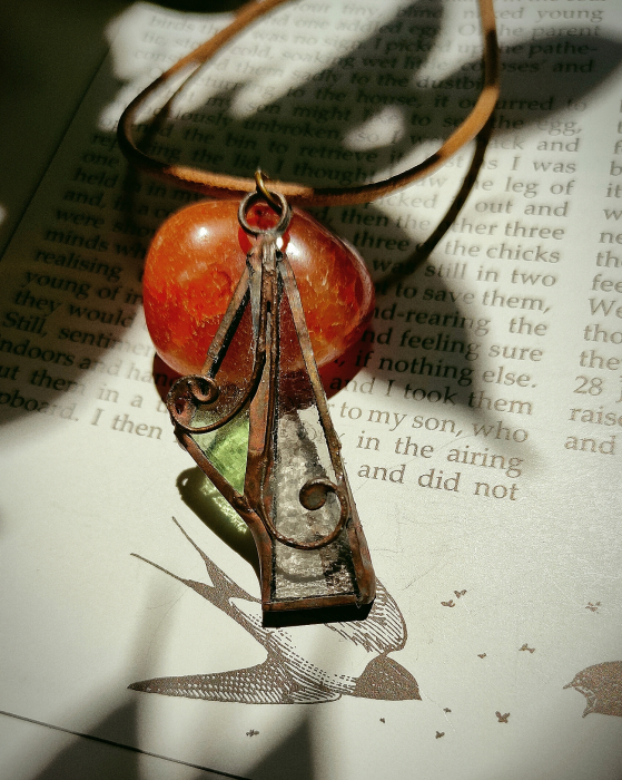 Colier din sticlă  Cathedral colorată verde și gri. Nu conține plastic. Colierul este unicat, facut manual. sticla este colorată in compoziție (nu este vopsită). Colier in tehnică de vitraliu.