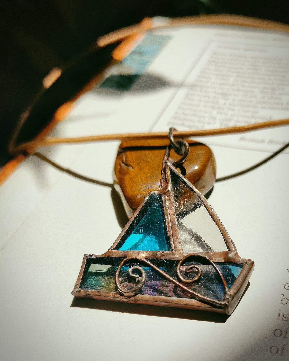 Colier din sticlă  Cathedral divers colorată și cupru. Nu conține plastic. Colierul este unicat, facut manual. sticla este colorată in compoziție (nu este vopsită). Colier in tehnică de vitraliu.