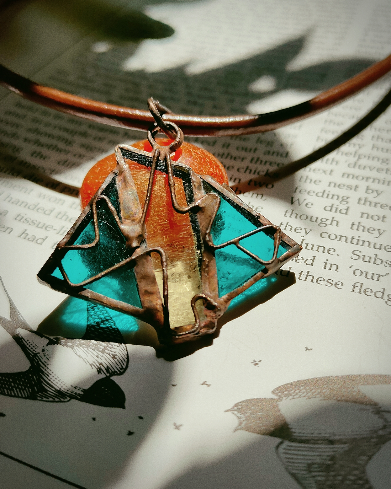 Colier din sticlă Cathedral colorată albastră și galbenă. Nu conține plastic. Colierul este unicat, făcut manual. Sticla este colorată in compoziție (nu este vopsită). Colier in tehnică de vitraliu.