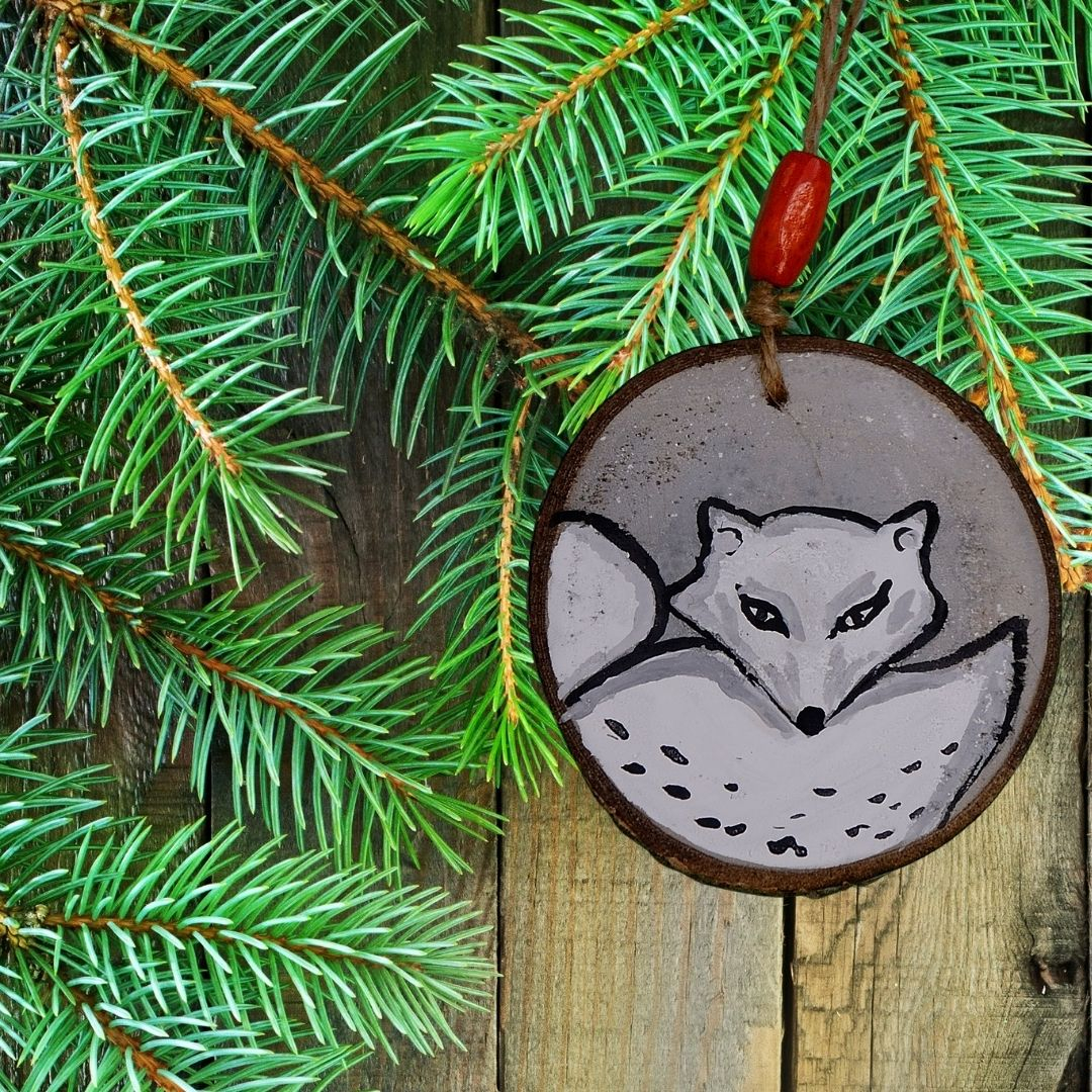 Ornament pentru Pomul de Craciun. pictura in vopsea acrilica pe lemn.