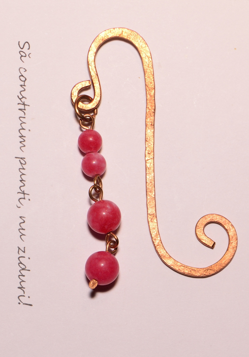 Semn de carte din cupru modelat manual, cu ornamente roșii. (nu conține elemente din plastic)