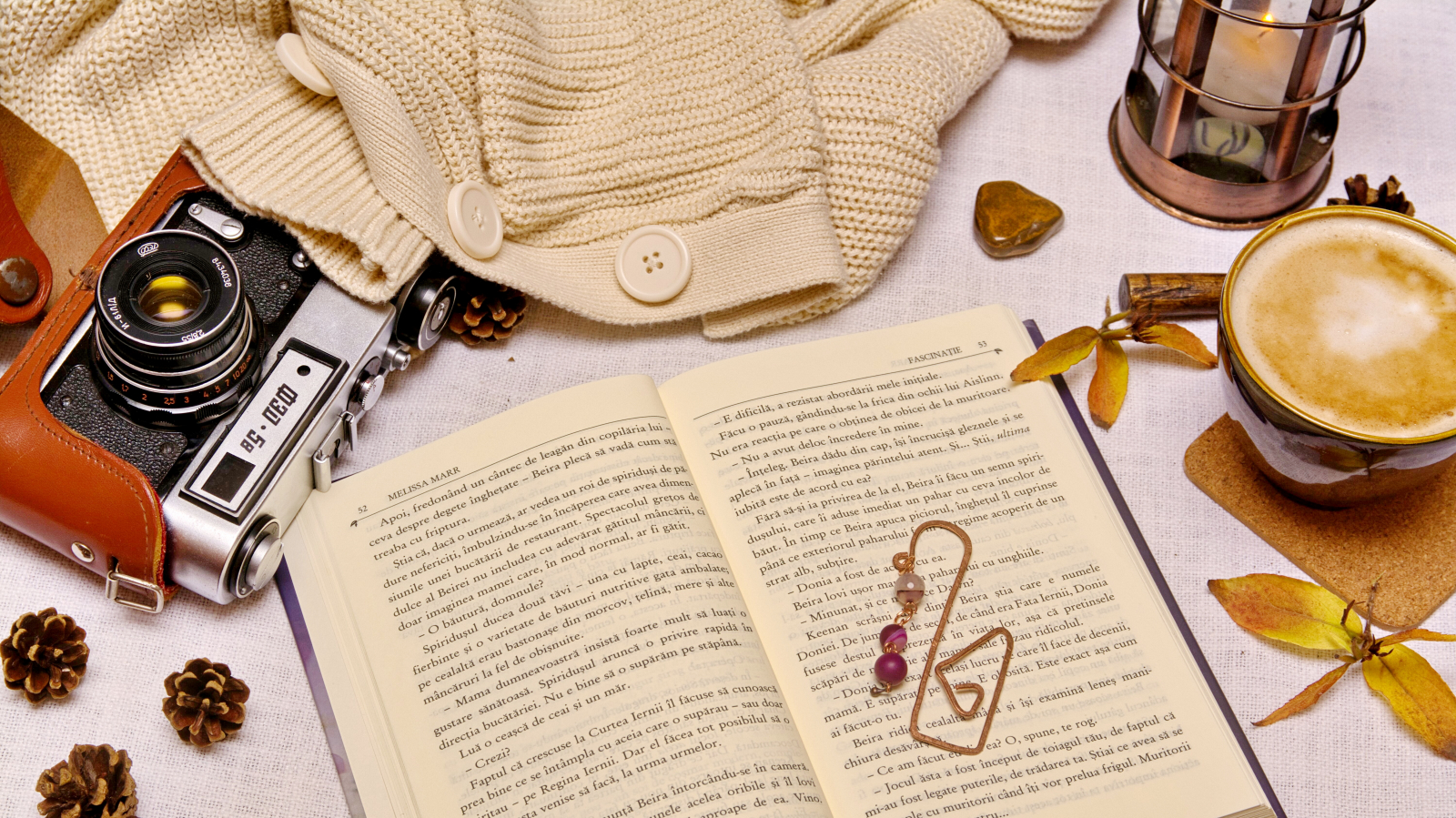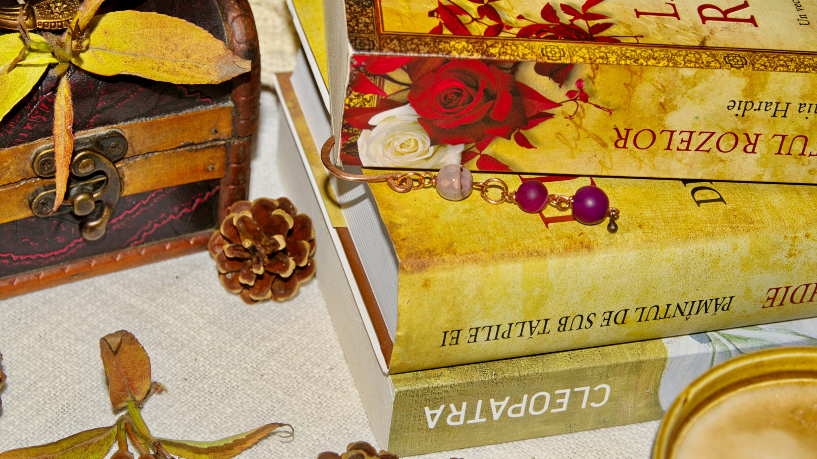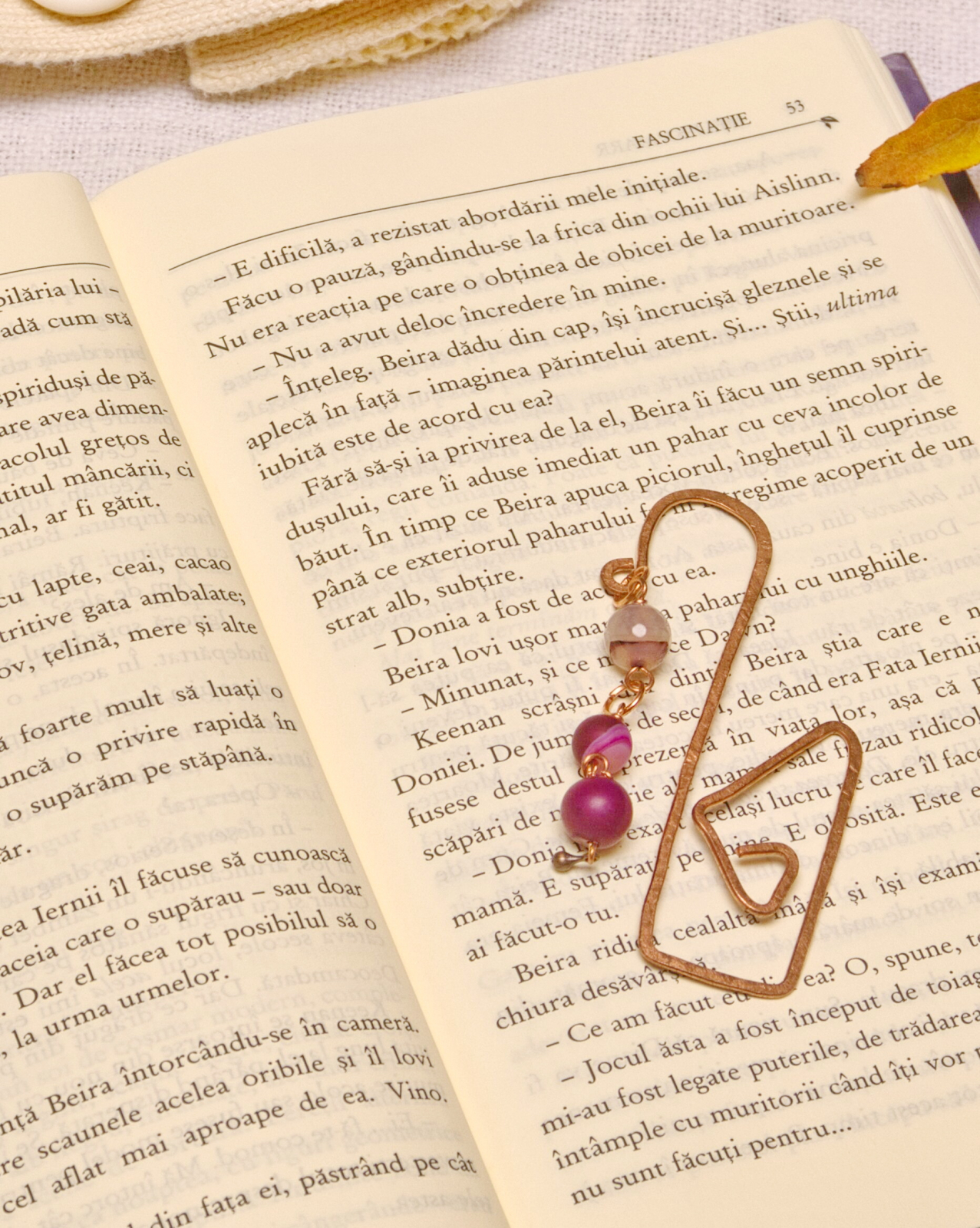 Semn de carte din cupru modelat manual, cu ornamente din agat. (nu conține elemente din plastic)