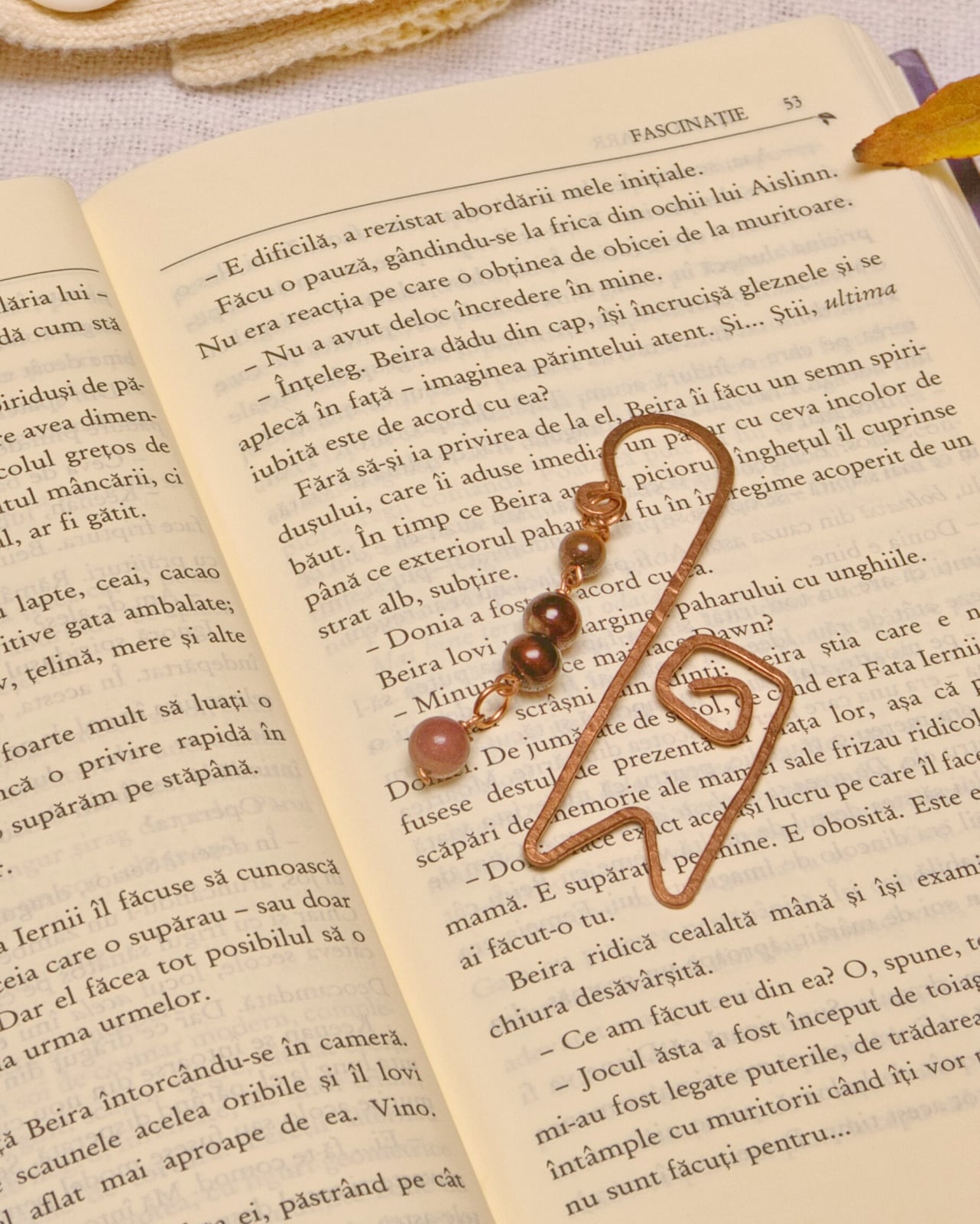 Semn de carte din cupru modelat manual, cu ornamente din agat. (nu conține elemente din plastic)