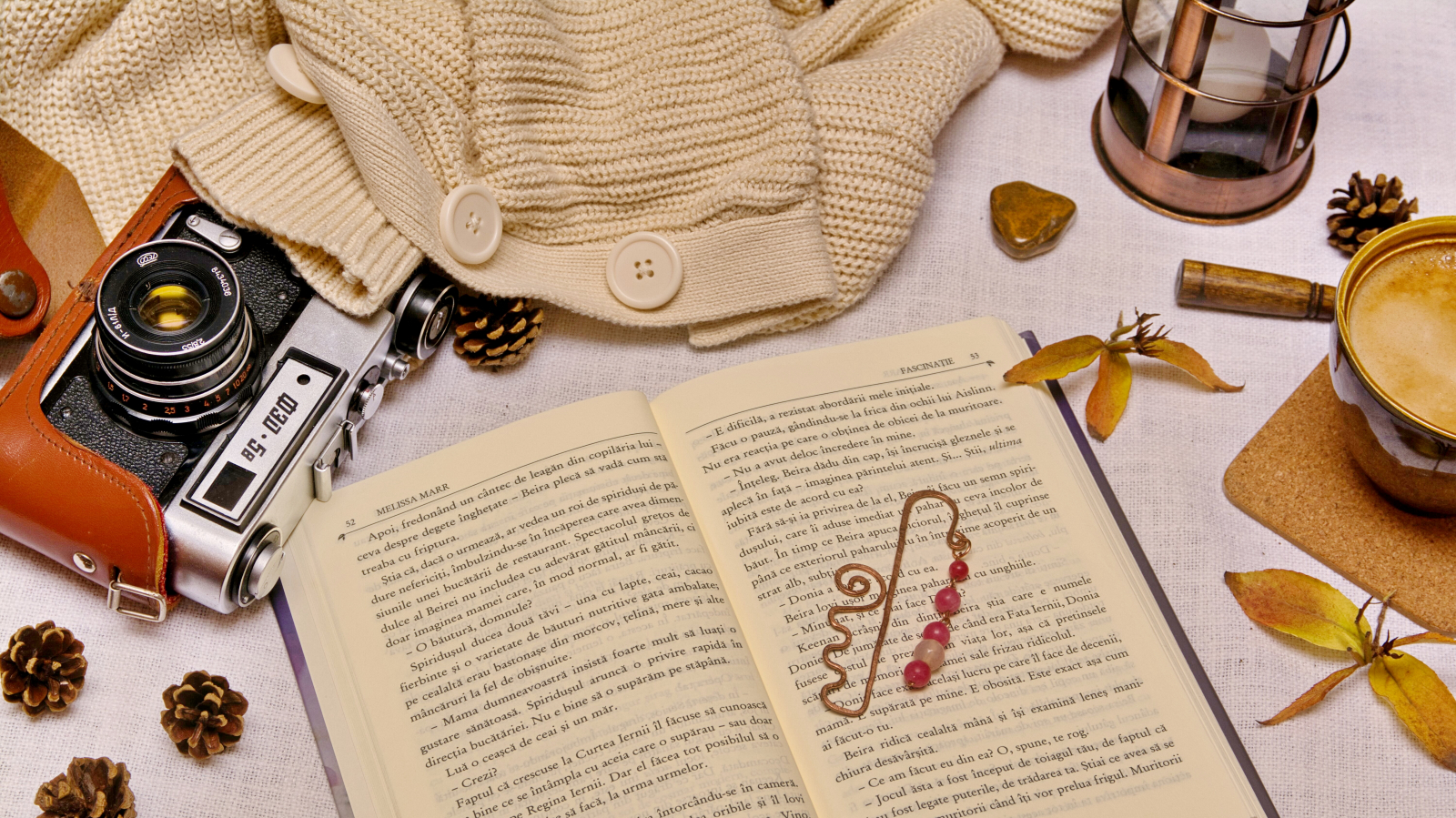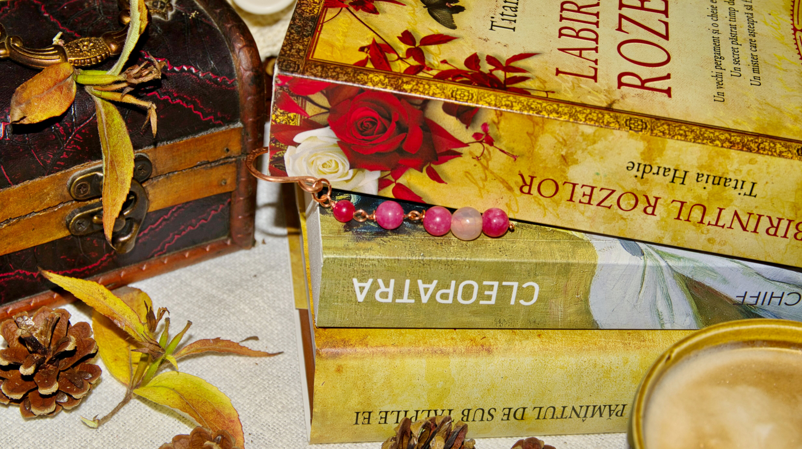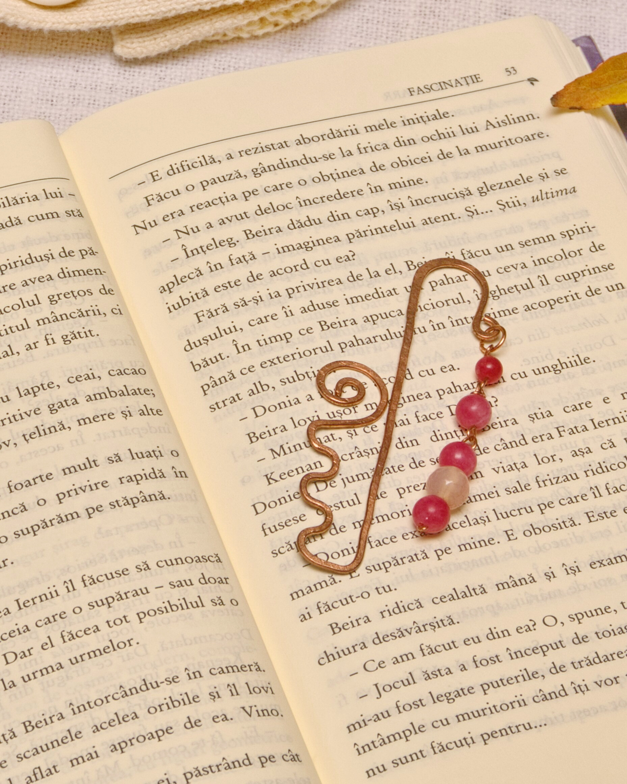 Semn de carte din cupru modelat manual, cu ornamente din agat. (nu conține elemente din plastic)